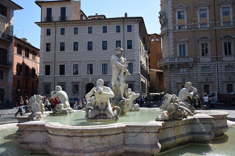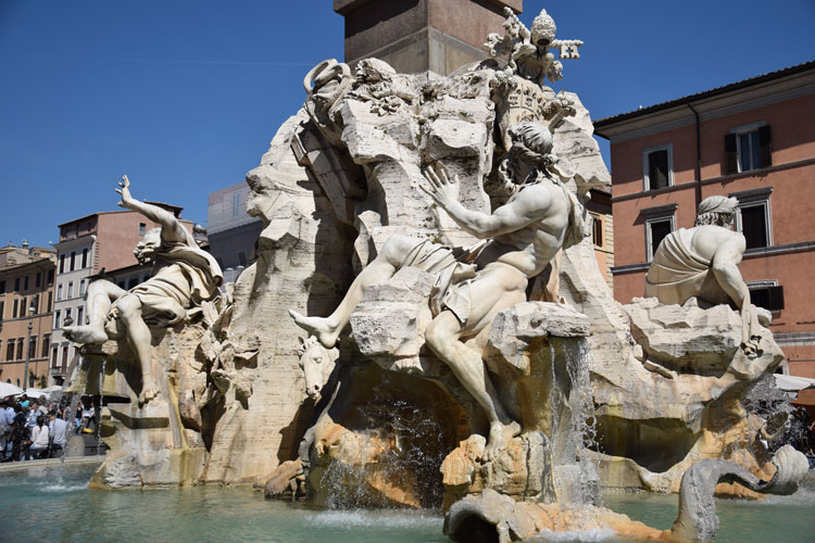 Mais bon, une fois passé la meute j’ai pu admirer cette splendide fontaine et le travail des sculpteurs. Et quel travail incroyable ! Mais comment font-ils pour donner autant de mouvement à des blocs de pierre ? Tous ces détails qui apparaissent, wouah ! C’est juste magnifique.