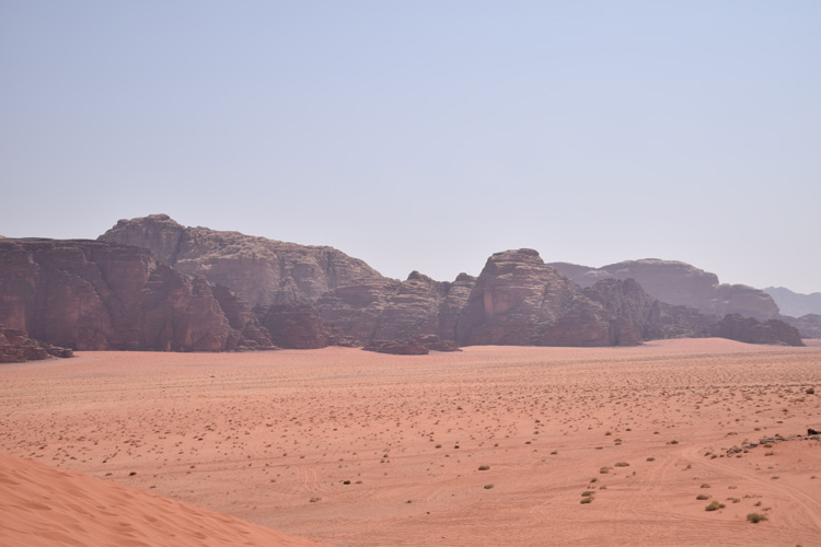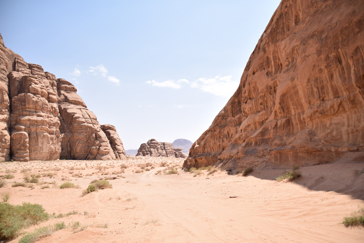 Les paysages du désert du Wadi Rum sont magnifiques. En fait ce n’est pas juste du sable et des dunes à perte de vue, non, il y a aussi des montagnes de grès absolument partout. C’est encore plus beau qu’à Pétra. Alors que le tout-terrain avance, je vois le panorama changer et se dessiner sous mes yeux, une montagne apparaît, puis un bloc rocheux, ensuite un canyon. C’est magnifique.
