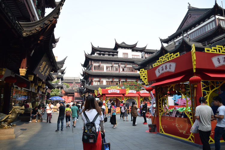Direction ensuite le vieux quartier de Shanghai. J’arrive dans le coin par Fang bang road. C’est une petite rue commerciale qui sonne déjà moins moderne que ce que j’ai pu voir de la ville jusqu’à maintenant. Plus j’avance, plus je commence à voir des maisons et des bâtiments traditionnels comme tu les imagines quand tu penses à la Chine.