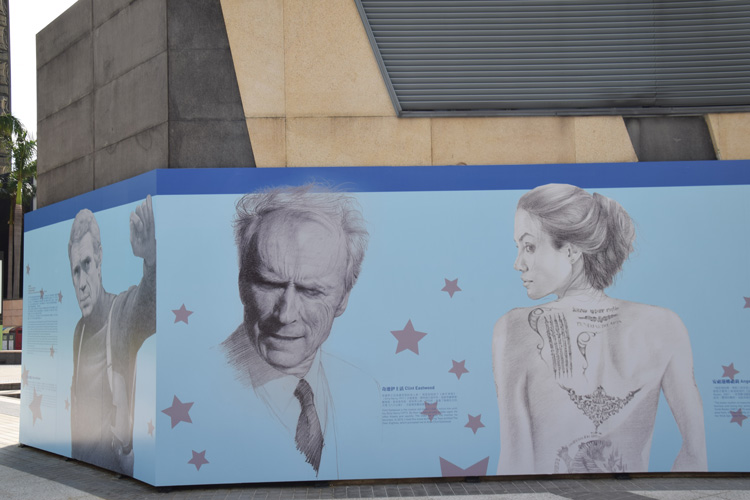 Je regarde mon plan et je vois que non loin de l’hôtel, il y a le « Garden of stars ». Bah, j’imagine qu’elle se trouve là-bas. Effectivement elle y est. Ce lieu est en fait un parc à la gloire de stars de cinéma chinoise ou pas. Certaines très connues d’autres moins, notamment les idoles exclusivement chinoises.