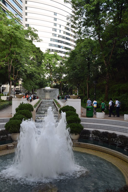 Entre autres fontaines, rivière artificielle, espaces verts et chutes d’eau, ce parc est pourvu d’une volière. C’est super, on peut marcher au milieu des oiseaux. Mais pas de chance elle est fermée ! Le Hong Kong parc fait un peu intrus au milieu des immeubles. C’est comme une bouffée d’oxygène. Une petite bulle de tranquillité qui lutte contre le béton et les tours de verre.