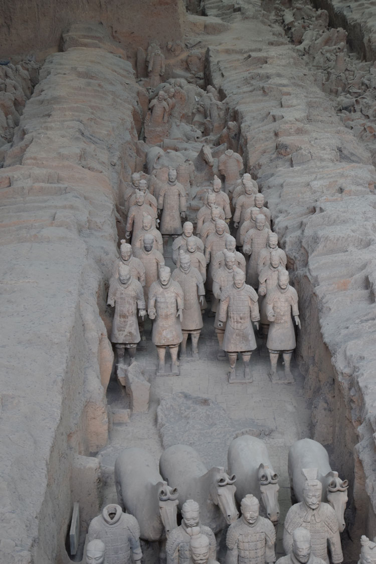 Ce site est réparti sur trois fosses ainsi qu’un hall d’exposition. Le plus impressionnant reste la première fosse car c’est incroyablement grand ! On a découvert ici mille statues, alors qu’à l’origine il y en avait cinq mille ! Effectivement, en voyant tous ces guerriers figés on ressent la puissance de l’armée. Même si ce ne sont que des statues de pierre, le nombre force le respect. C’est un genre de défilé du 14 juillet figé dans le temps.